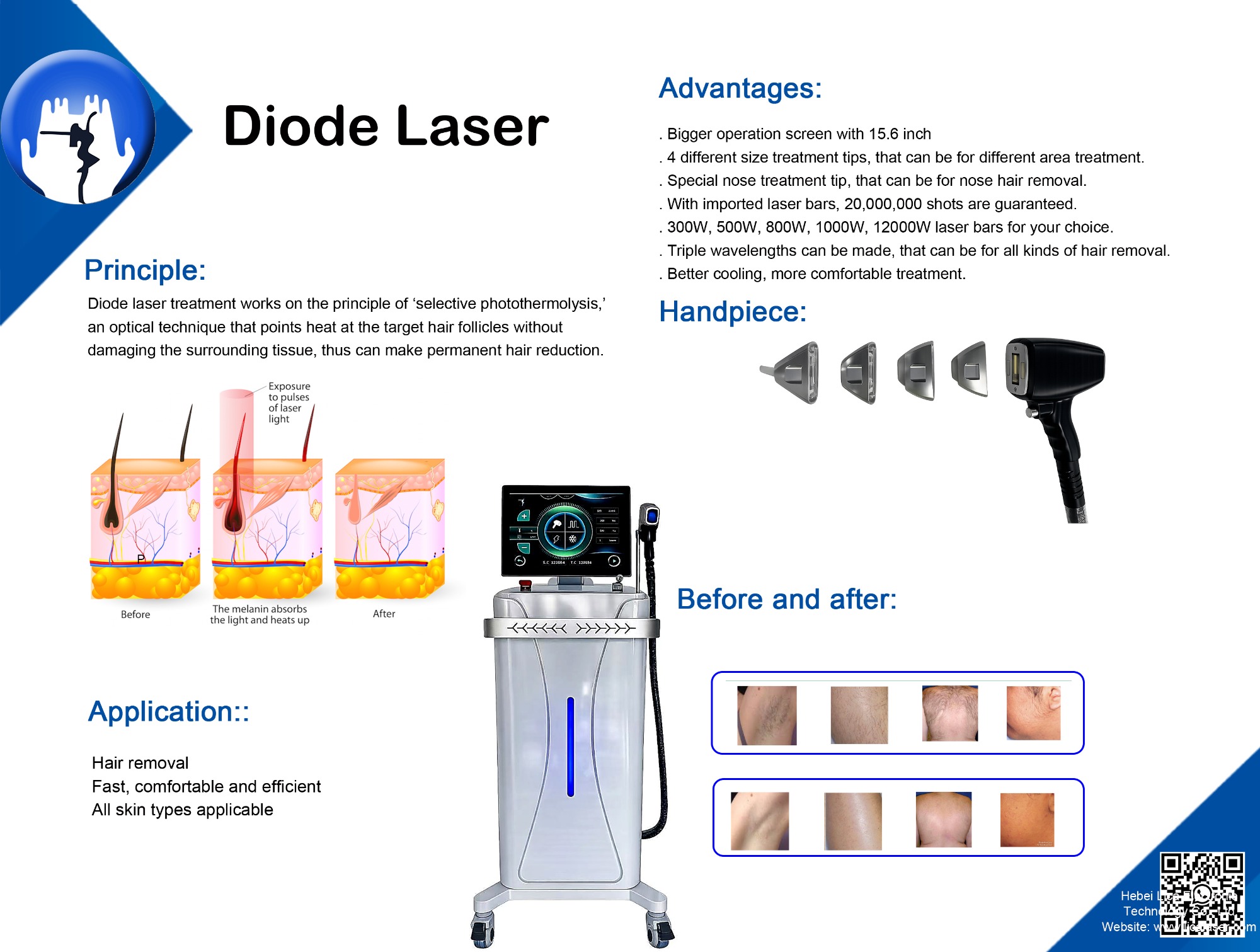 It is based on the selective dynamics of light and heat. The laser goes through the skin surface to reach the root of hair follicles light can be converted into heat damaged hair follicle tissue without injuiry the surrounding tissue.