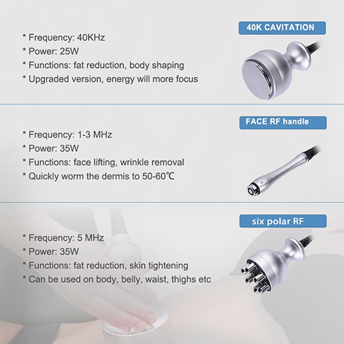 Strong wave of 40KHZ will be emitted to body for impacting cells fiercely and results in friction motion among fat cells, which will cause calories consumption and smaller the size of fat cells. Furthermore, large number of fat cells will explode immediately due to intensive impact and wave vibration, then quantity of fat cells are significant decrease.